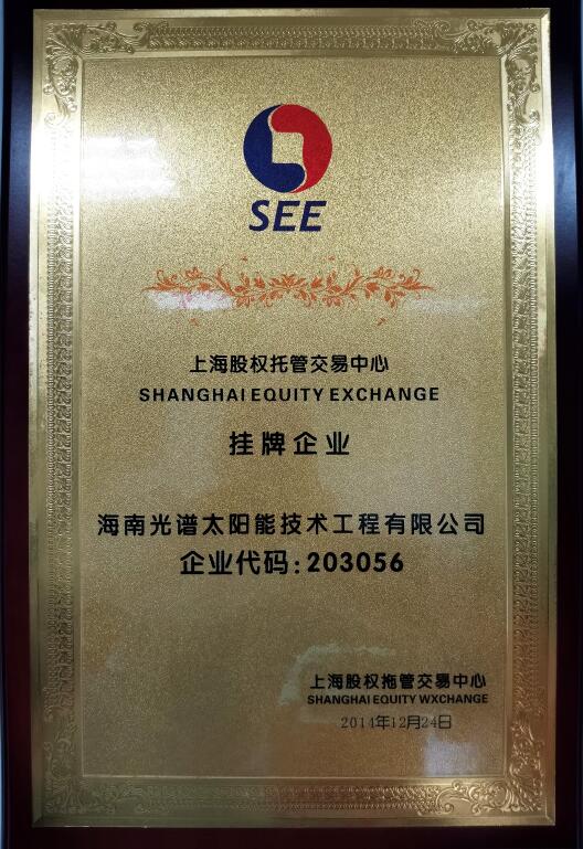 海南光譜節能環保科技有限公司成立于2001年,注冊資本1018萬元人民幣,是一家專業的太陽能、中央空調工程技術系統集成商。2014年12月24日,我司在上海股權托管交易中心成功掛牌,上股交代碼為:203056。